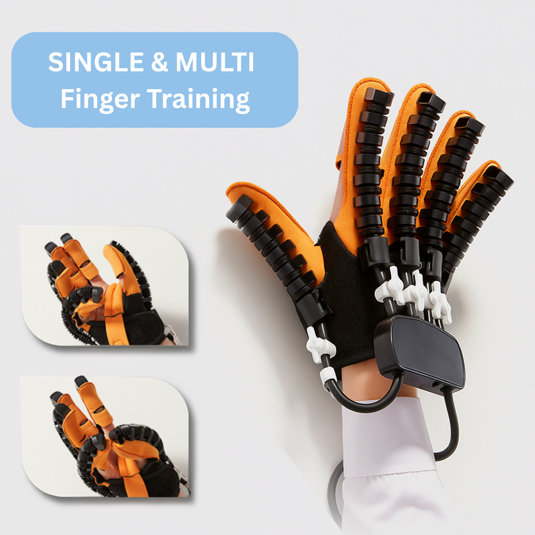 The glove encourages gentle motion in a non-invasive, user-controlled way — helping reduce stiffness, numbness, and spasms while improving circulation and sensitivity.