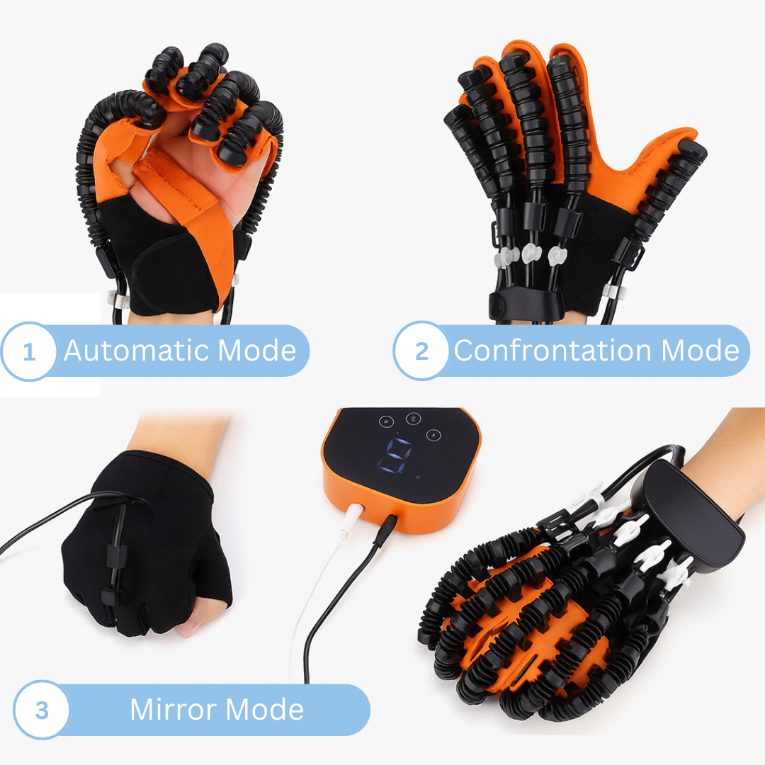 2. Confrontation Mode – the glove performs the opposite action of your hand, recommended for later-stage rehabilitation.